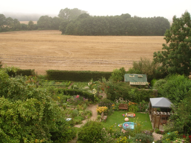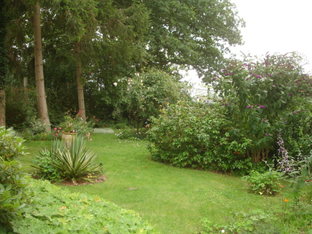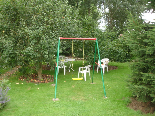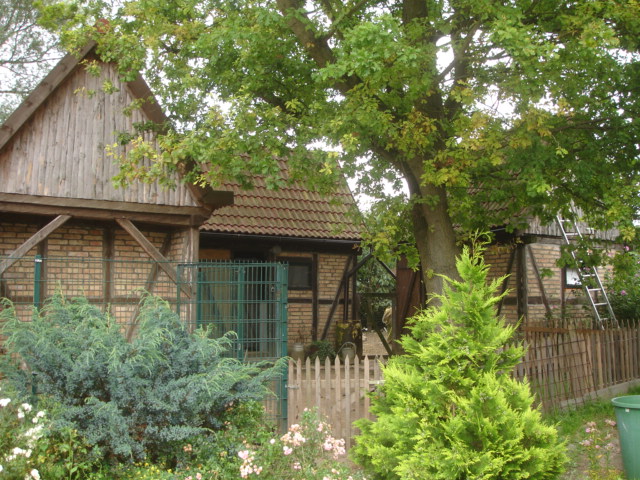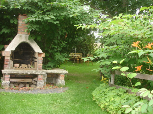 Der Garten ist etwa 3000 qm groß und umschließt das gesamte Haus. An das Grundstück grenzen nicht etwa Nachbarn sondern die Weiten unserer mecklenburgischen Felder. Auch der Lenorenwald, der zu ausgedehnten Wanderungen einlädt, befindet sich nicht weit entfernt. Der Garten bietet die verschiedensten Themenvielfalten, so ist hier auch ein Miniaturbauernhof zu finden, in dessen Häuschen sich Ställe für Hühner, Enten, Kaninchen etc. befinden.