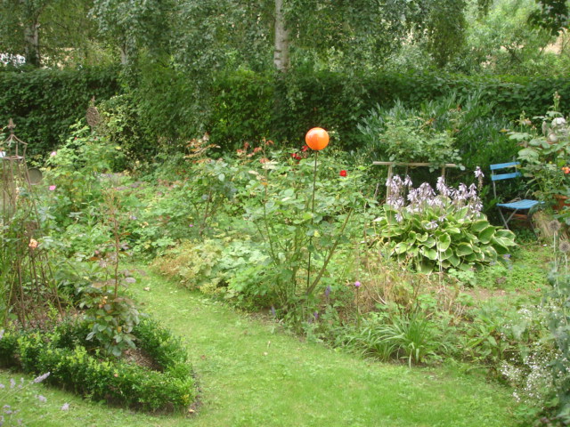 im parkähnlichen Garten finden sich überall Möglichkeiten zum Verweilen und Genießen